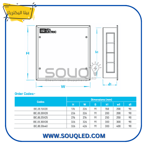 أقصى درجات التنظيم لشبكتك الكبرى! بواط تجميع بيتا اليكتريك (كود: BE.JB.30X30X9) هو الضمانة الحقيقية لعدم تداخل الأسلاك وتوفير مساحة صيانة مريحة. اطلب مقاس 30*30 سم الآن واضمن تأسيس كهرباء مطابق للمواصفات الفنية العالمية!