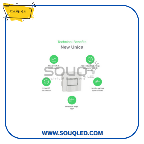 جدد منزلك بلمسة من الذكاء والأمان! سنسور حركة شنايدر نيو يونيكا يمنحك راحة البال من خلال التحكم التلقائي في إضاءة منزلك، ويساعدك على خفض استهلاك الكهرباء بكل سهولة وأناقة.