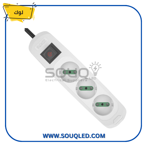 مشترك كهرباء 3 عين (مخرج) – بدون إيرث (2 بن) – سلك 1.5 متر – ماركة i Lock الأصلي