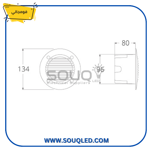 - المواصفات الاساسية: يحدد بأنه 3 وات LED، بلون إضاءة أصفر دافئ (3000 كلفن)، وهيكل دائري أسود ذو وجهين إضاءة.